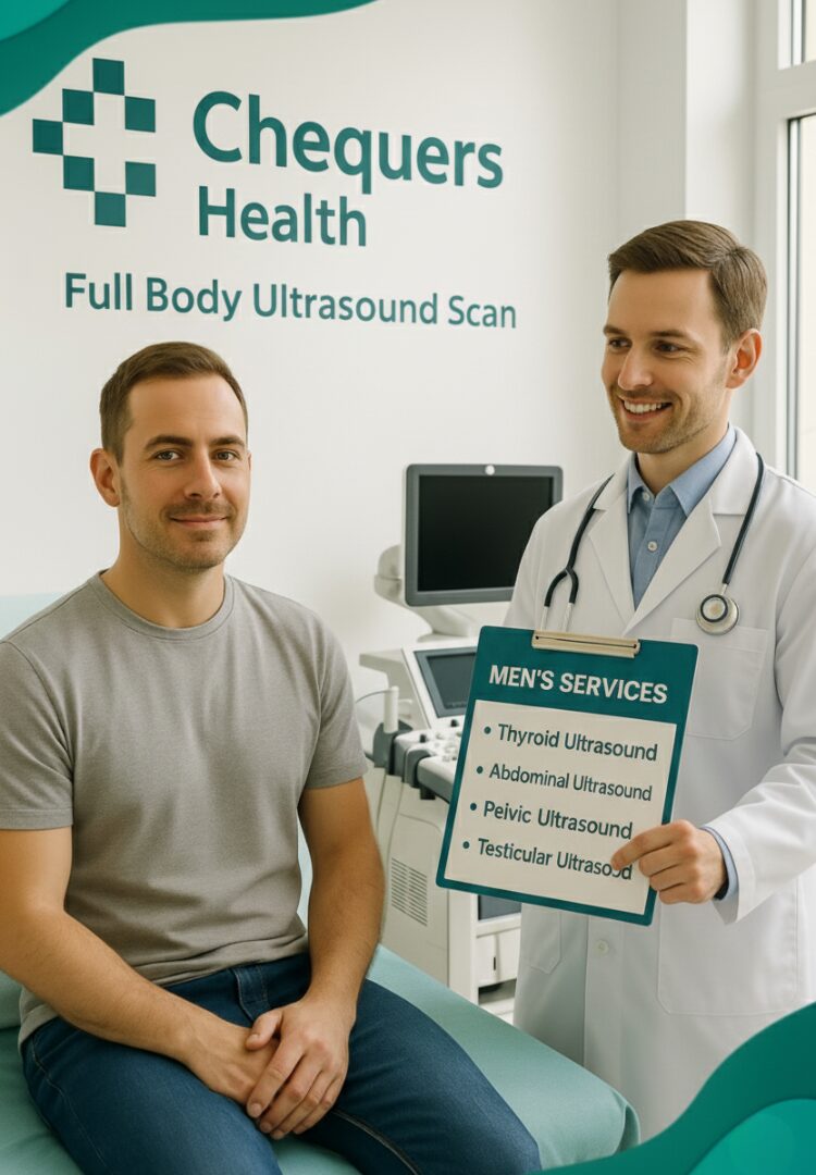 Book your Male Full Body Ultrasound Scan   Now For Better Health With Chequers Health
